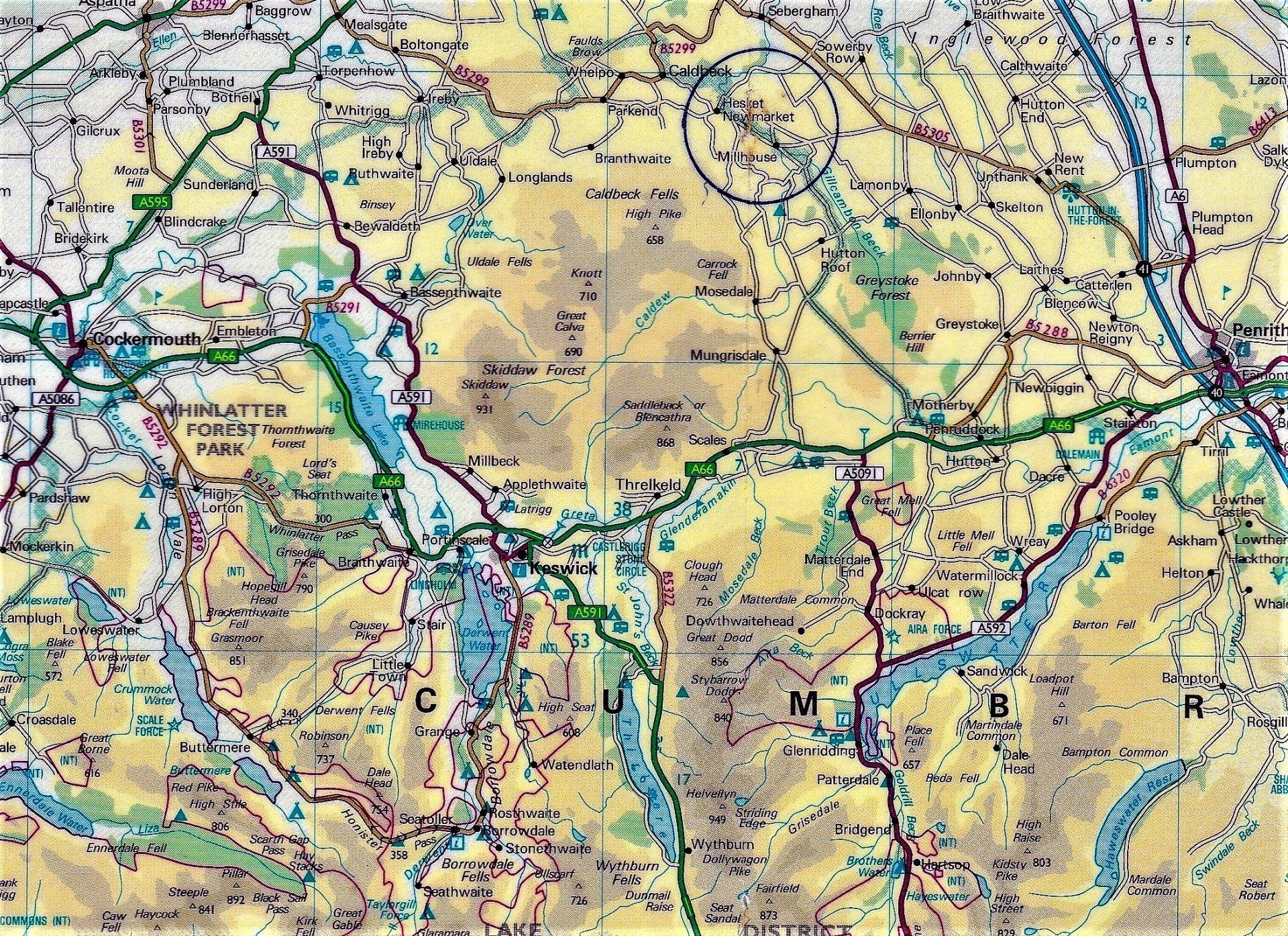 And adjacent MILLHOUSE, the river Caldew and the Gillcambon beck also form the eastern border of the Lake District National Park.